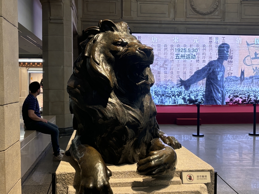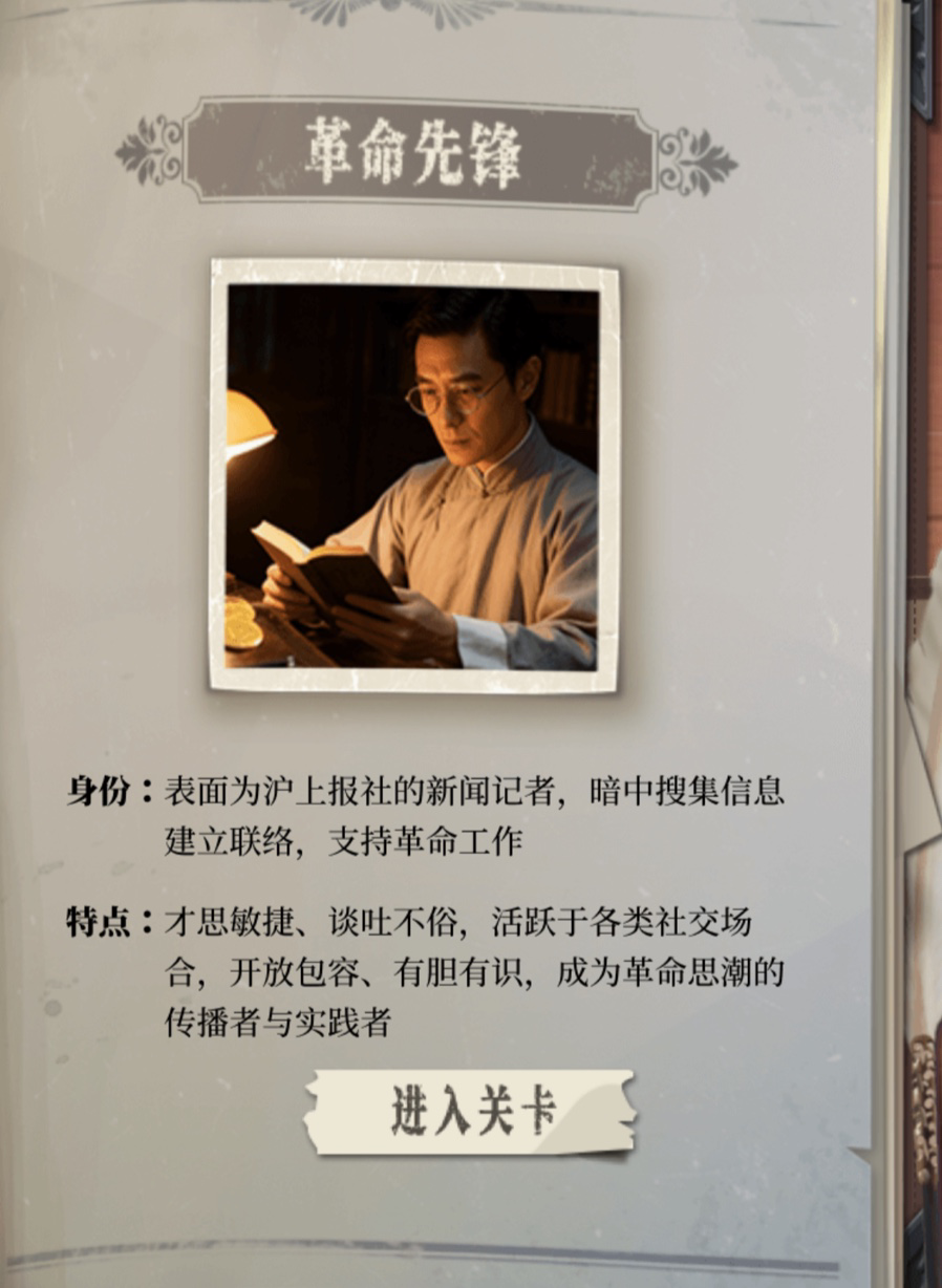 记者通过手机识别馆内一楼的汇丰银行铜狮后,游戏正式开始。剧本游的基础设定是一场“穿越奇旅”,时间线由远及近,玩家将依次扮演闯荡码头的盐布商人、点亮星火的革命先锋、破晓而生的有志青年。