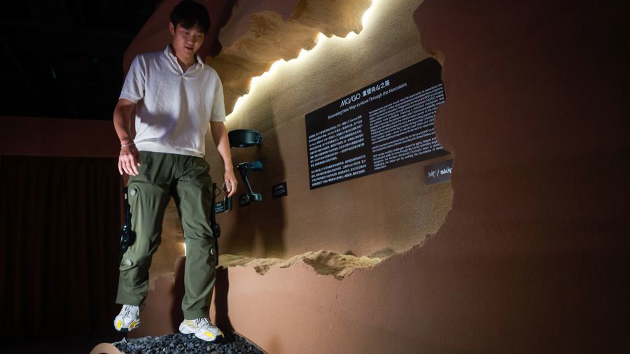试穿者身着外骨骼软壳裤 海沙尔摄