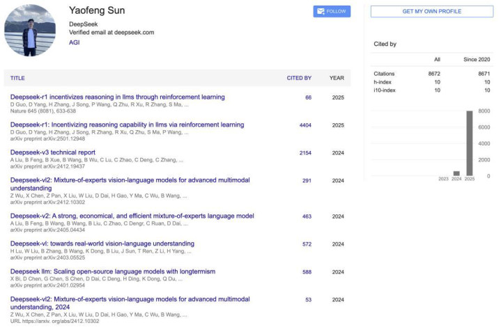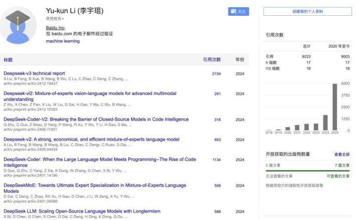 2020年至今,引用数已过9千;参与过DeepSeek-v3、DeepSeek-vl2、DeepSeek-v2、DeepSeek-Coder、DeepSeek-MoE、DeepSeek LLM等项目研究。
