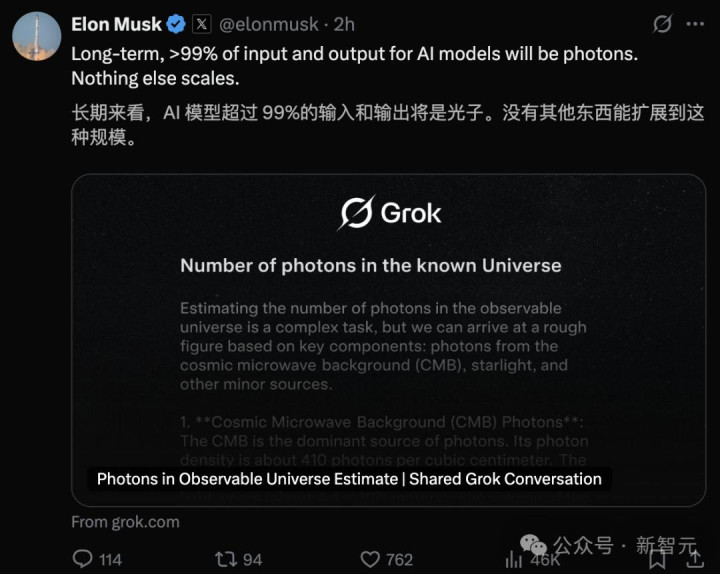 马斯克让Grok估计了一下已知宇宙的光子总量: