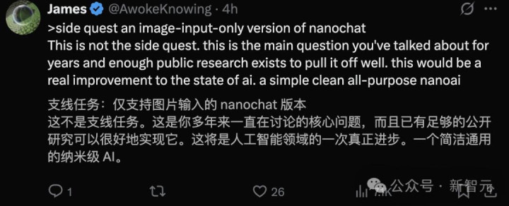 帖子下面,网友恳求Karpathy:快搞个只用图像输入的「nanochat」吧!