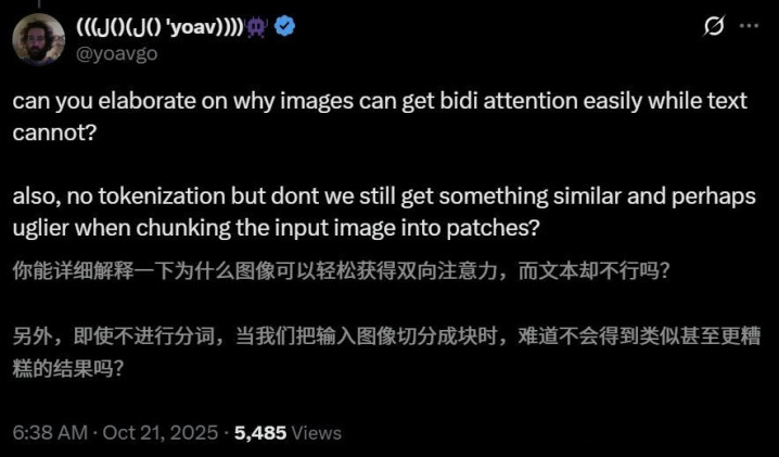 至于第二个问题,他认为,严格来说与「像素 vs. Token」无关。其核心更在于,像素通常是被编码的(encoded),而 Token则是被解码的(decoded)。