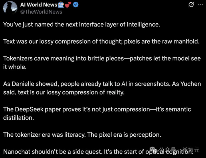 DeepSeek-OCR在动摇「文本作为AI的核心地位」,而视觉或将再次成为主流!